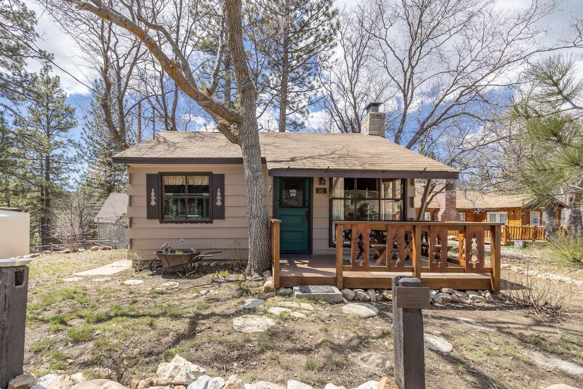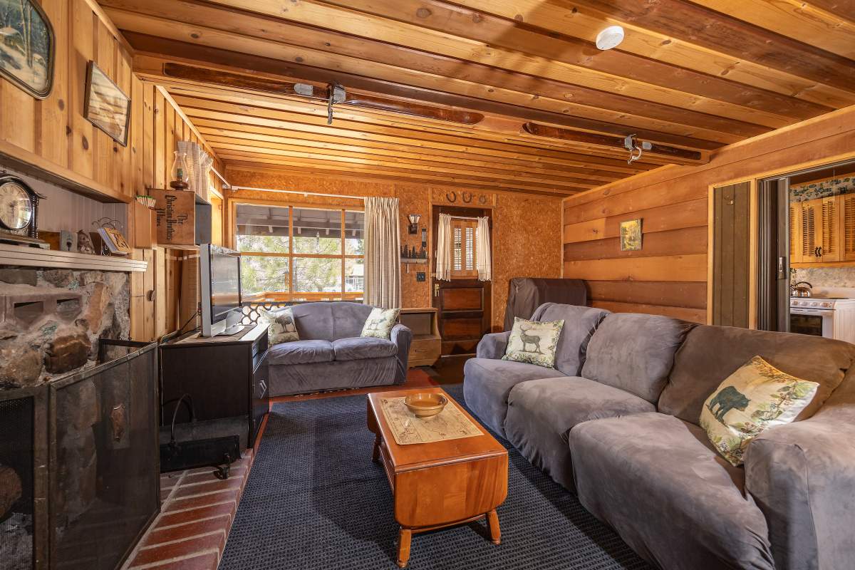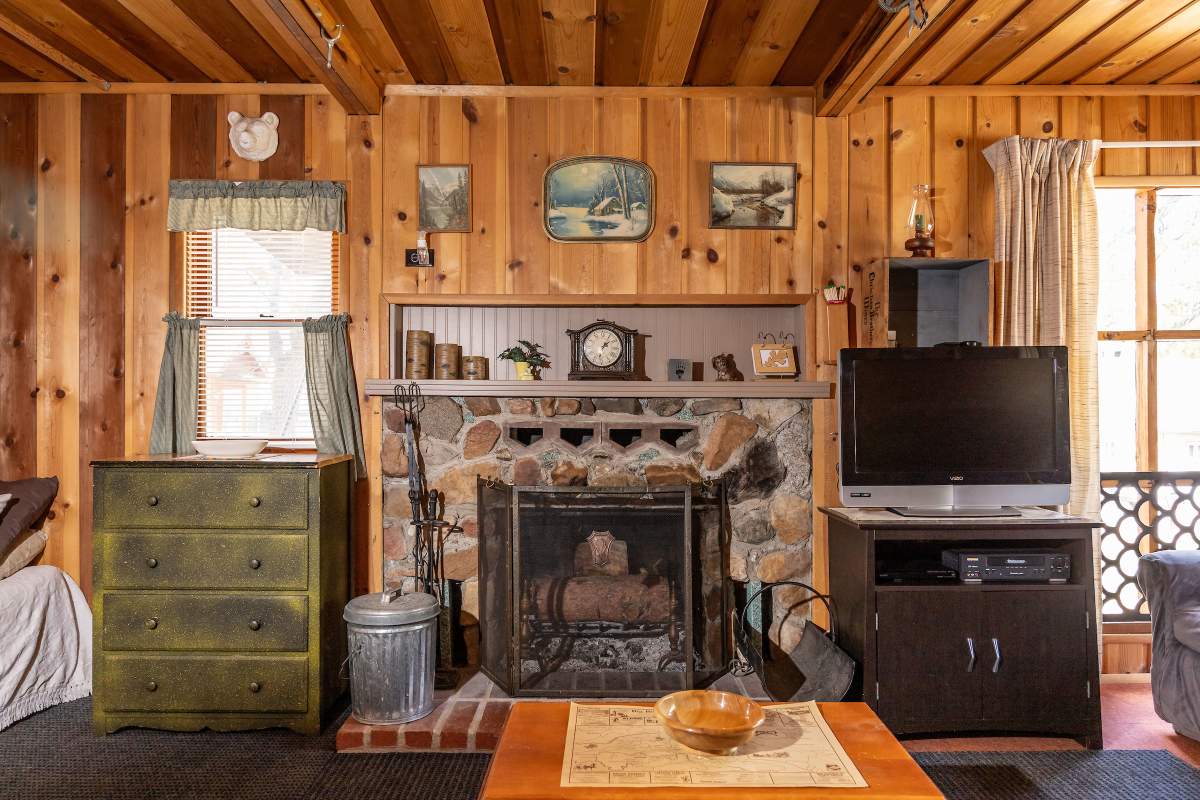 Take a step back in time at this quaint rustic cabin near the lake. First time on the market; this home has been loved by the same family since dad built it in 1958. Single-level 1 bed, 1 bath, featuring a cozy rock fireplace with brick hearth, T&G walls and ceiling, and cute “cabiny” decor. Eat-in kitchen. Enjoy the peaceful mountain setting out on the Trex front porch or out in the spacious fenced back yard. Attached storage shed for all of your tools and toys. Excellent location within walking distance to the lake and just minutes drive to the Village, ski slopes, forest trails, and everything else beautiful Big Bear has to offer. Easy all-season access and level parking. Fishing boat included!