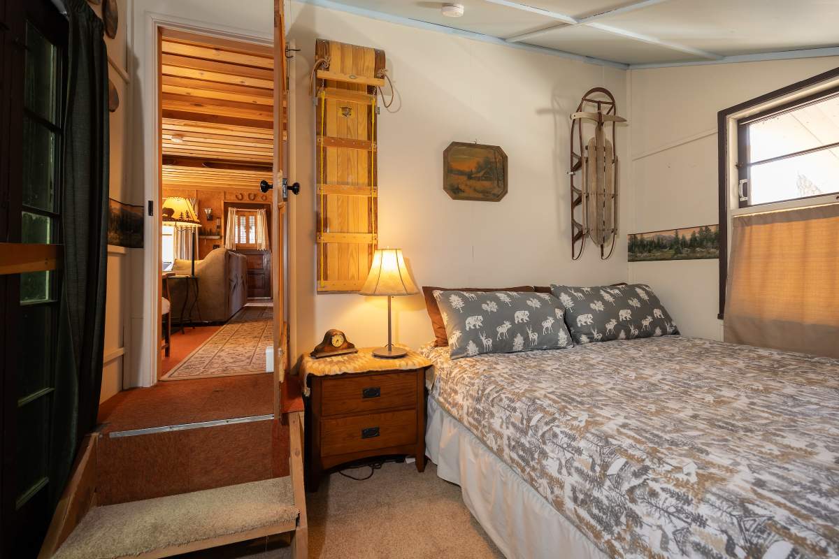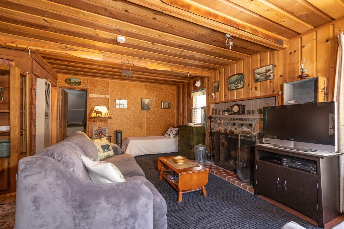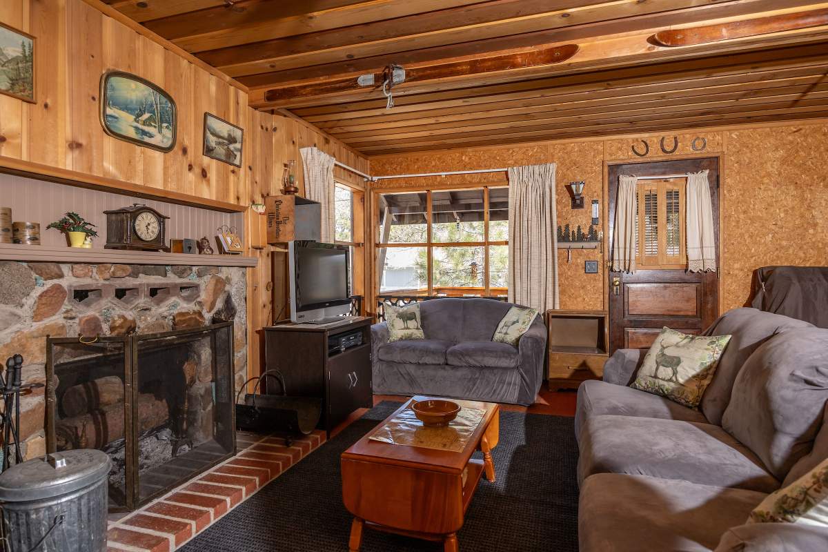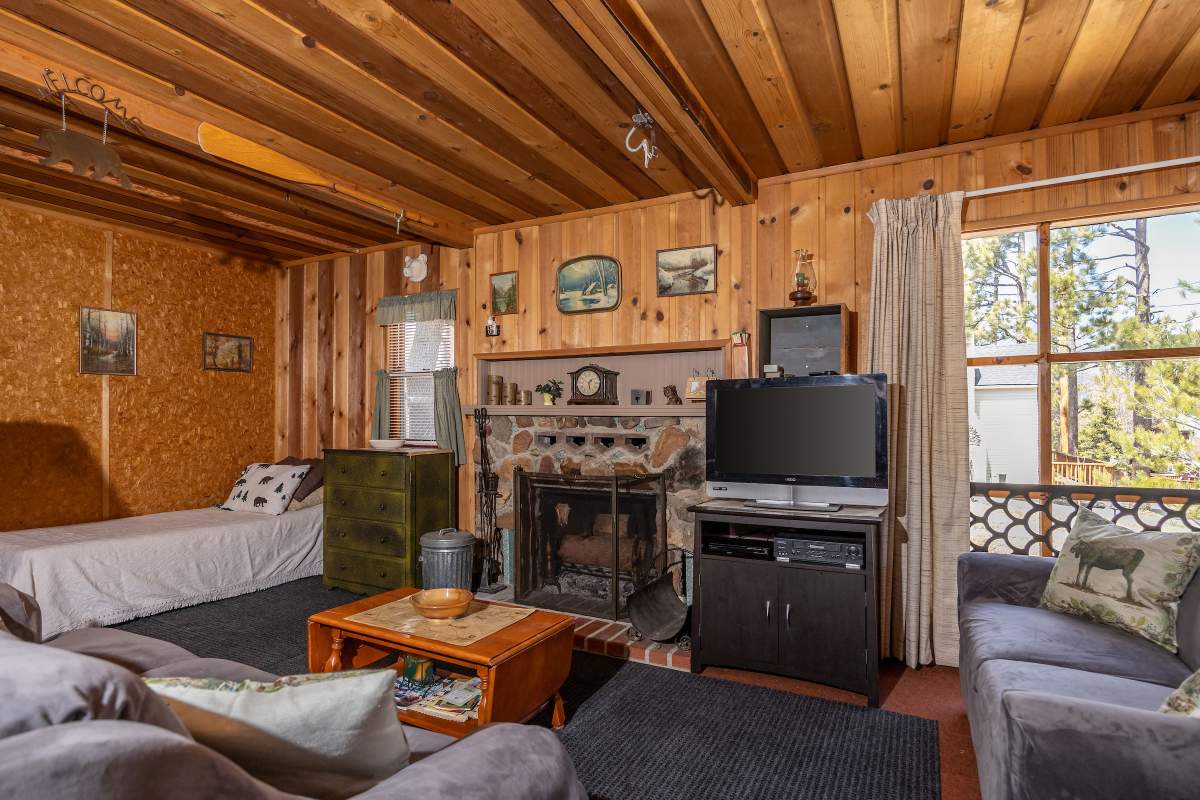 Take a step back in time at this quaint rustic cabin near the lake. First time on the market; this home has been loved by the same family since dad built it in 1958. Single-level 1 bed, 1 bath, featuring a cozy rock fireplace with brick hearth, T&G walls and ceiling, and cute “cabiny” decor. Eat-in kitchen. Enjoy the peaceful mountain setting out on the Trex front porch or out in the spacious fenced back yard. Attached storage shed for all of your tools and toys. Excellent location within walking distance to the lake and just minutes drive to the Village, ski slopes, forest trails, and everything else beautiful Big Bear has to offer. Easy all-season access and level parking. Fishing boat included!