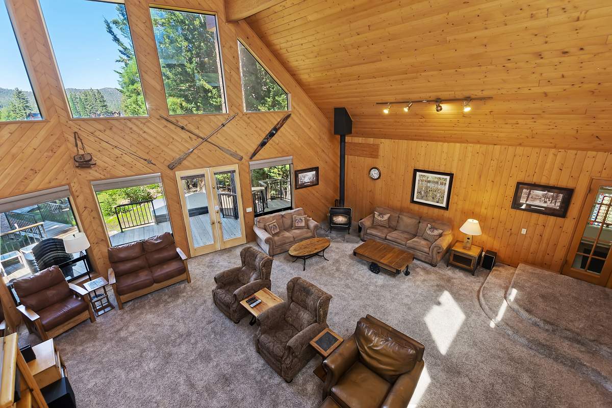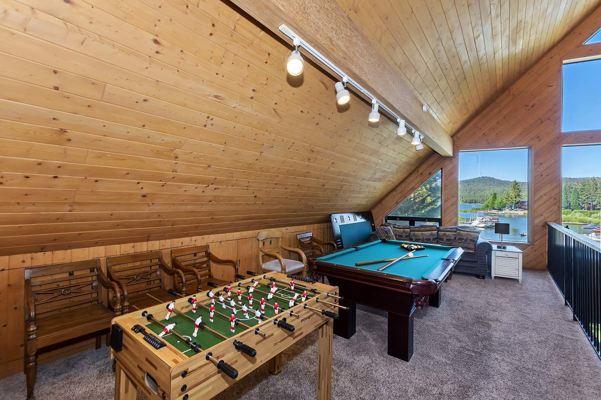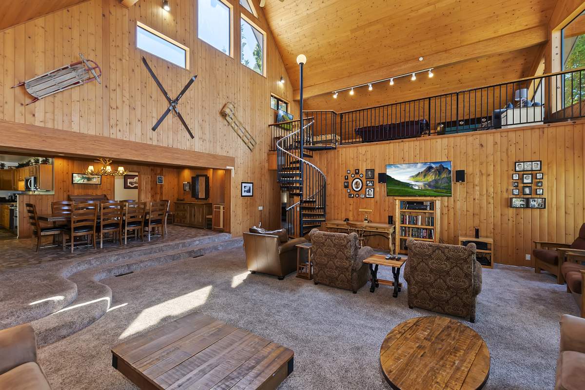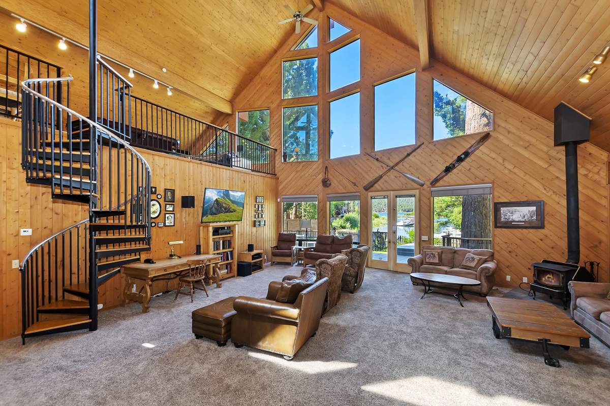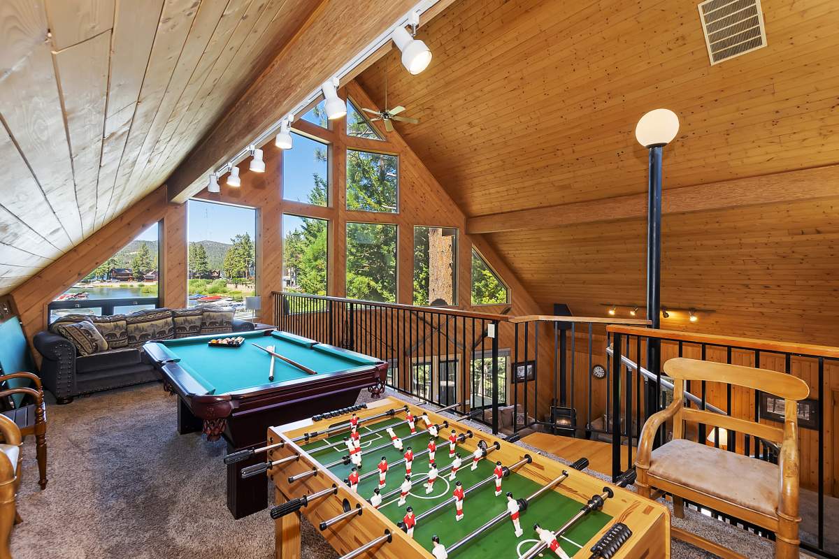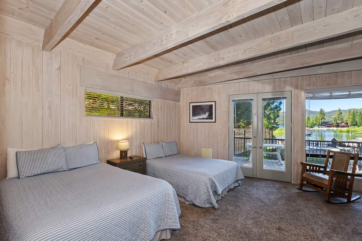 Live the lakefront lifestyle in beautiful Big Bear Lake. This tastefully updated chalet-style home has it all. The impressive great room boasts soaring cathedral ceilings, abundant wood T&G, a wall of windows and french doors that open to the sunny back deck and landscaped back yard. Designed for entertaining, the living areas flow together and include a formal dining area with a native rock fireplace. Kitchen has been updated with granite and stainless. Relax or play in the loft are which has a new slate pool table and great views of the lake. 4 bedrooms and 3 full baths, including 2 master suites, all on the main level, allow room for a crowd and easy access. Over $100,000 worth of improvements over the last few years including all new carpet and tile throughout (except kitchen), new 50-year GAF Golden Pledge roof installed in 2020, new garage door, new natural gas BBQ, new spa, new furniture in all bedrooms and living room, new window blinds throughout, new forced air unit (two FAUs efficiently heat the whole house), updated landscaping. Garage has been modified with a taller door and a deeper section for boat storage (currently houses a 23-foot wake boat). Included is the quality custom dock and gangway with aluminum frame, Trex deck, and new stairs built this year. Go take a look – this turnkey property is ready for you to start making your lakeside memories today.