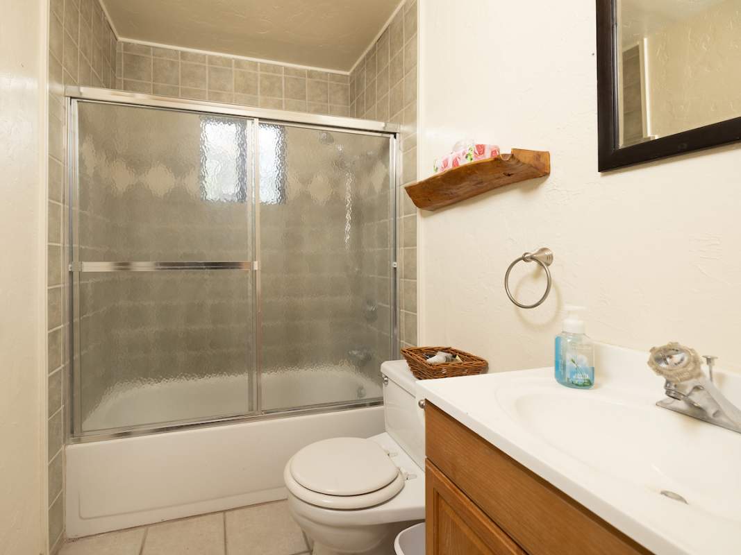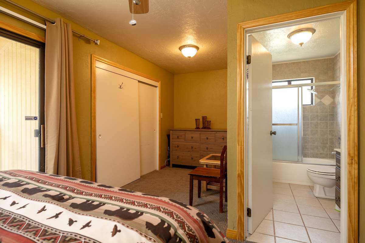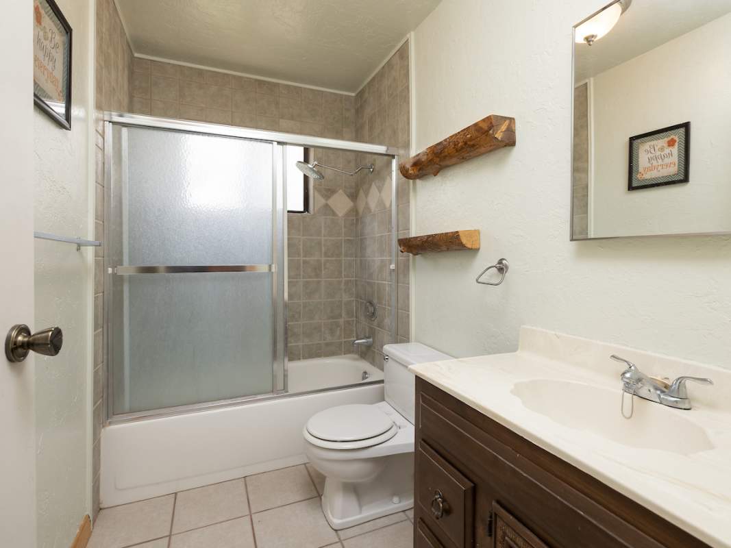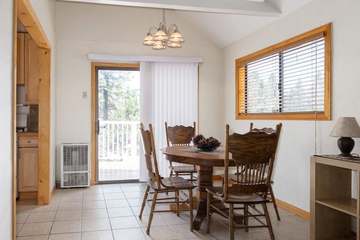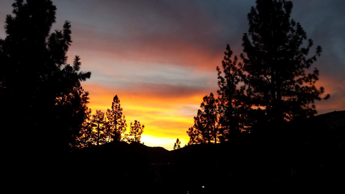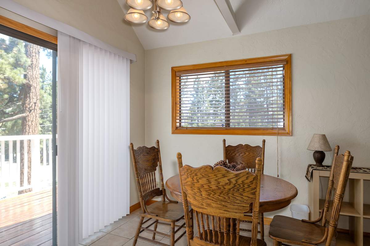 Enjoy treetop views and beautiful sunsets from this unique mountain home situated on a fenced 1/4 acre. Freshly painted exterior and new carpet on the stairs. Main level features vaulted ceilings, tile floors, and sunny wraparound deck off of the dining area. Updated kitchen has plenty of storage space. One bedroom and full bath on main level as well. Upper level features a loft style living room and adjacent master suite w/private balcony. Sprawling fenced yard and two quality storage sheds. Garage has laundry hookups inside. Would make a great weekend getaway and/or rental investment property.