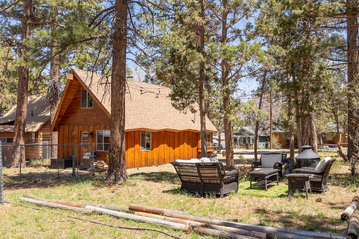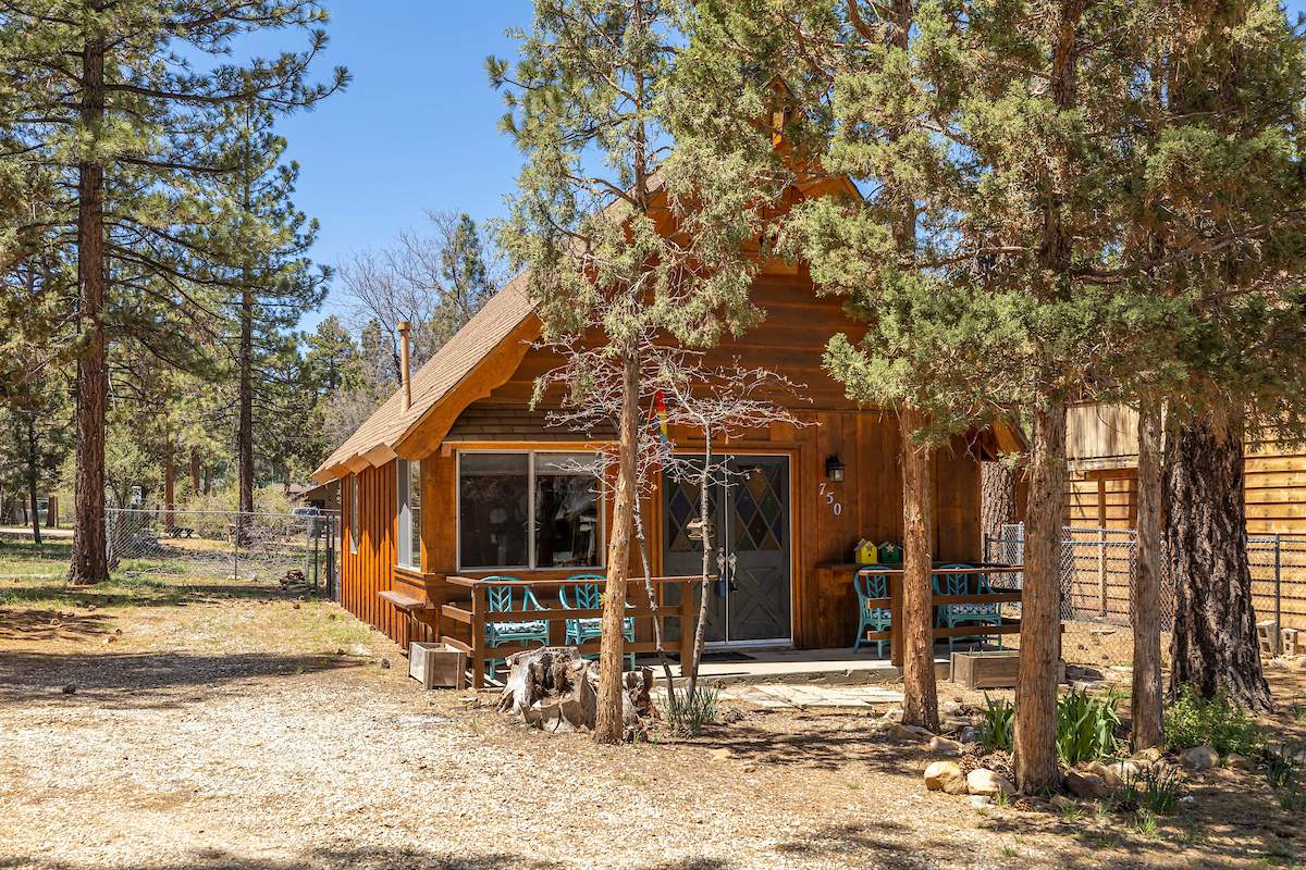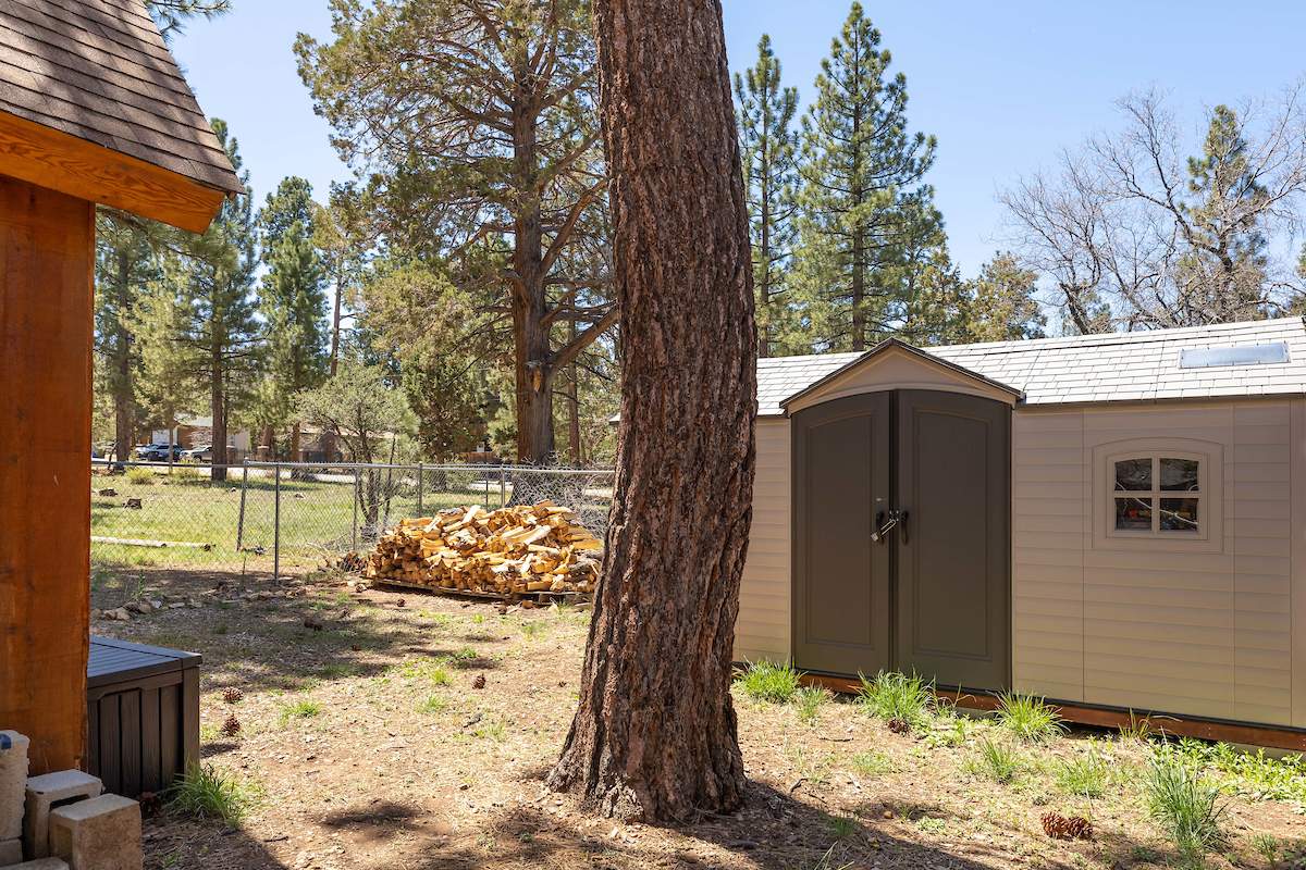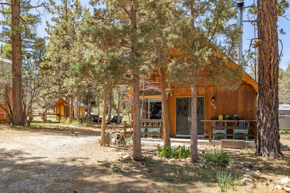 Classic mountain chalet on a sprawling treed lot near National Forest. High beamed ceilings with lots of wood T&G, efficient Franklin stove. Remodeled kitchen, bedroom and bath on main level, second bedroom loft with cool ceiling fans. New flooring in bedrooms and carpet on stairs. Washer/dryer combo in the bathroom. Fenced yard and two storage sheds. Relax amongst the pines out on the front deck or sitting area situated at the rear of the property away from the street. Easy year-round level access with plenty of parking for RV or boat and room to add on or build a garage. Go check it out!