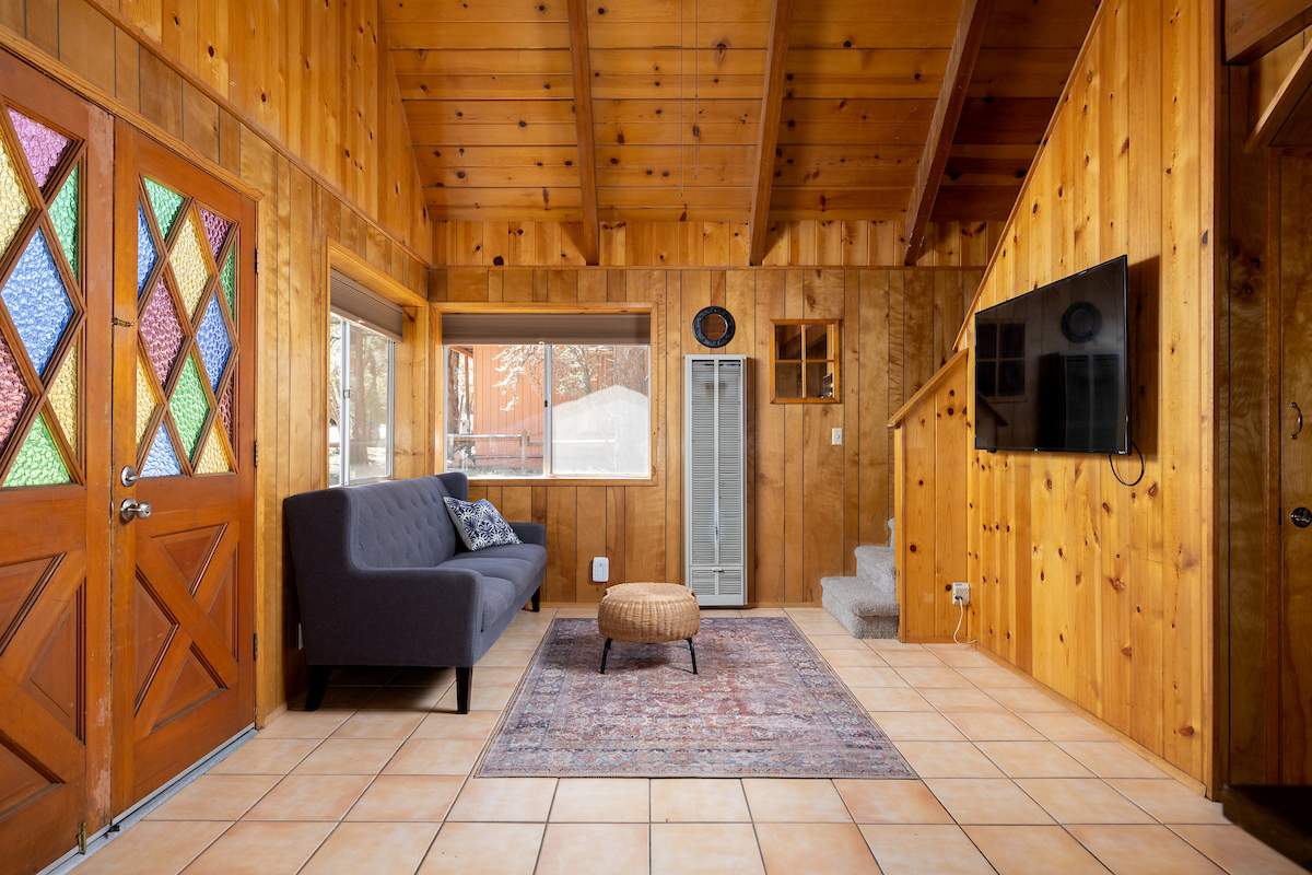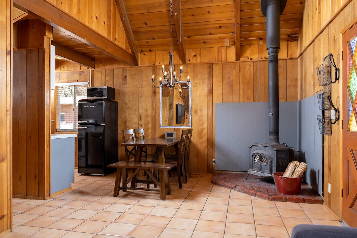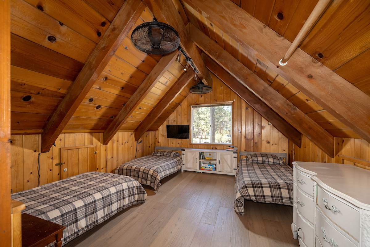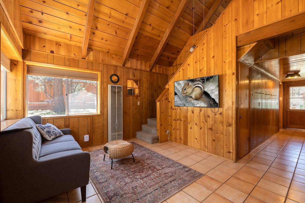 Classic mountain chalet on a sprawling treed lot near National Forest. High beamed ceilings with lots of wood T&G, efficient Franklin stove. Remodeled kitchen, bedroom and bath on main level, second bedroom loft with cool ceiling fans. New flooring in bedrooms and carpet on stairs. Washer/dryer combo in the bathroom. Fenced yard and two storage sheds. Relax amongst the pines out on the front deck or sitting area situated at the rear of the property away from the street. Easy year-round level access with plenty of parking for RV or boat and room to add on or build a garage. Go check it out!