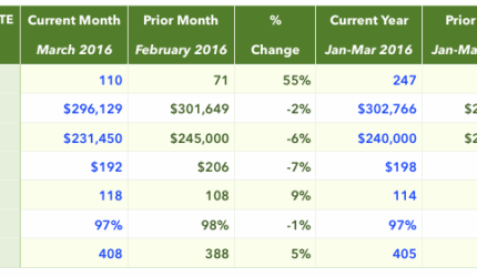 Market Wide Summary Big Bear Real Estate market snapshot for the month of March 2016 The median sales price of single family homes in March decreased by 6% compared to the previous month, average sales price was down 2% from February, though was 2% higher compared to Continue Reading