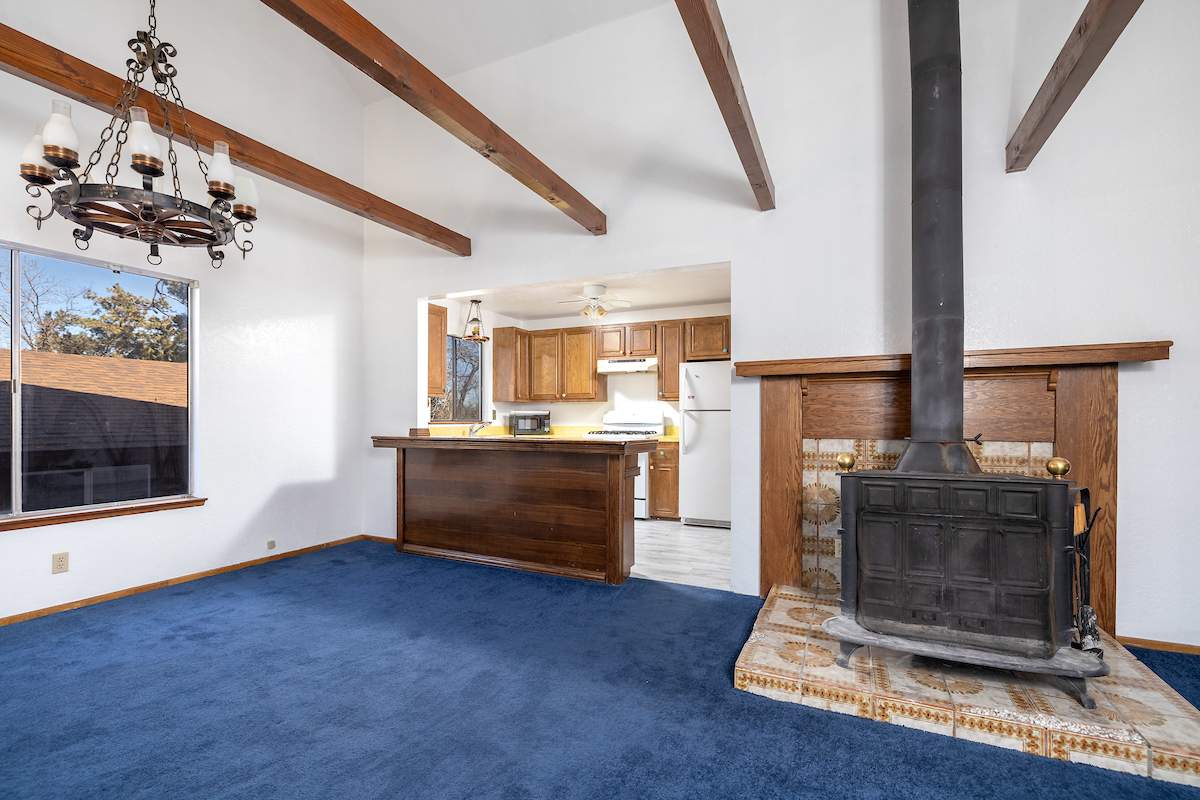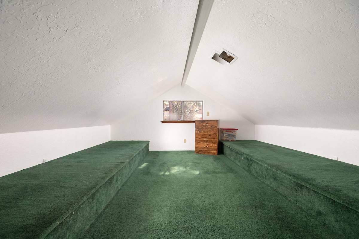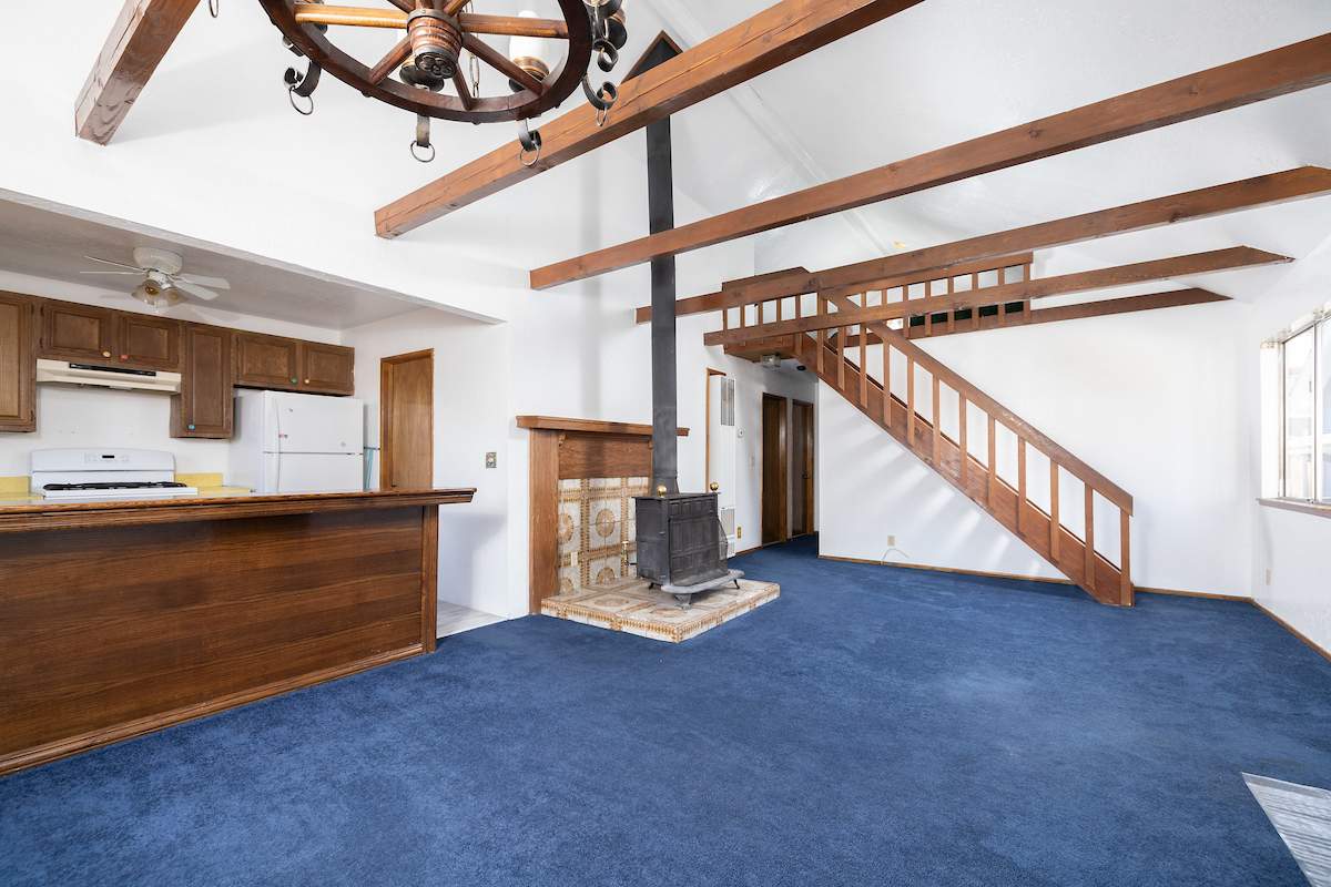 Steps from national forest on a large lot in upper Sugarloaf, this cabin has 2 bedrooms, 2 baths + loft and detached garage. Circular concrete driveway offers plenty of easy access parking with room for boat or RV on included adjacent parcel. Living room features beamed ceilings and efficient wood stove. Kitchen has custom cabinetry, plenty of storage and counter space, and an attractive wood breakfast bar. Full size laundry hookups in bathroom. Newer roof (4 years old), interior and exterior paint, wall heater, water heater and flooring.