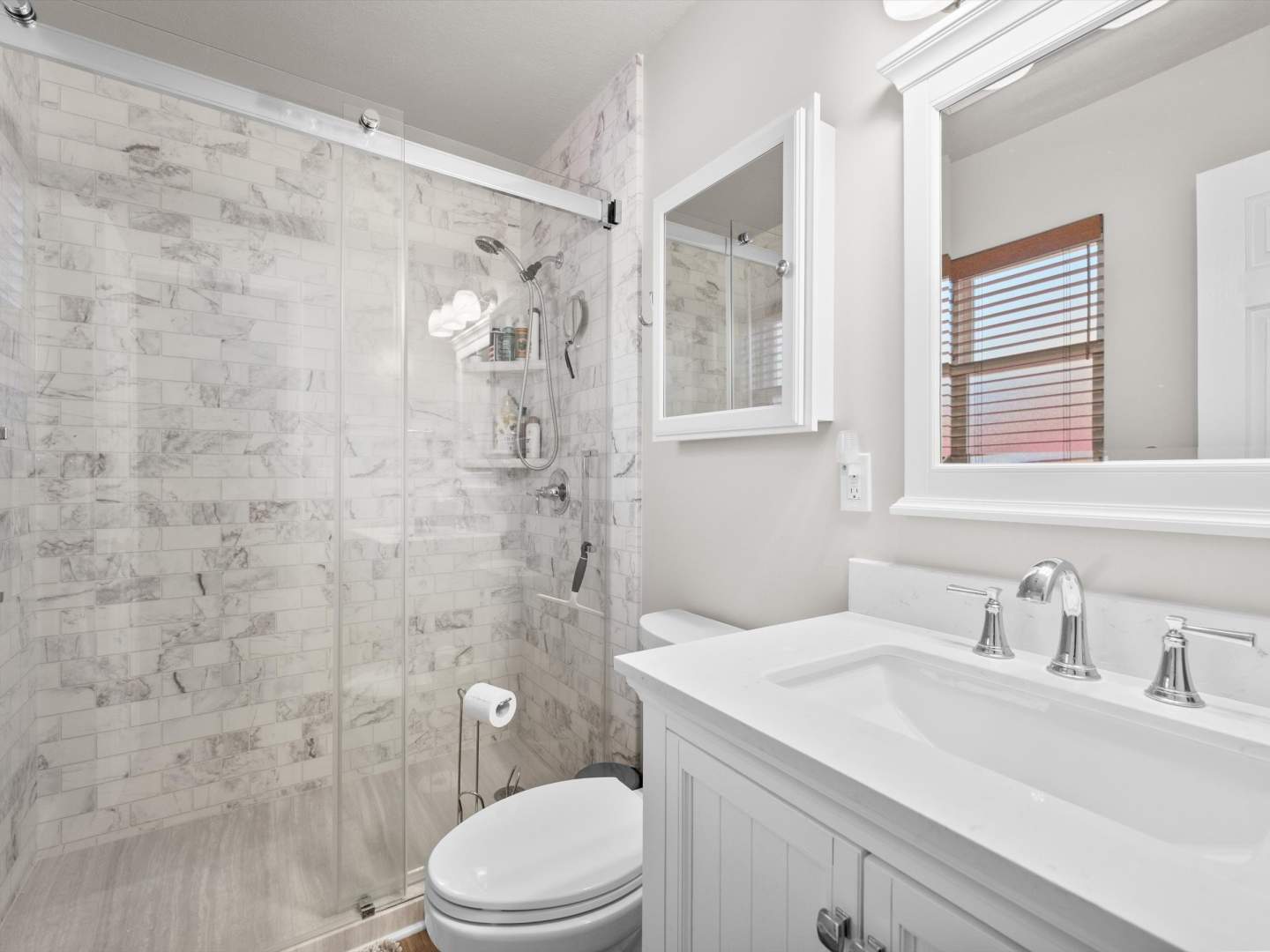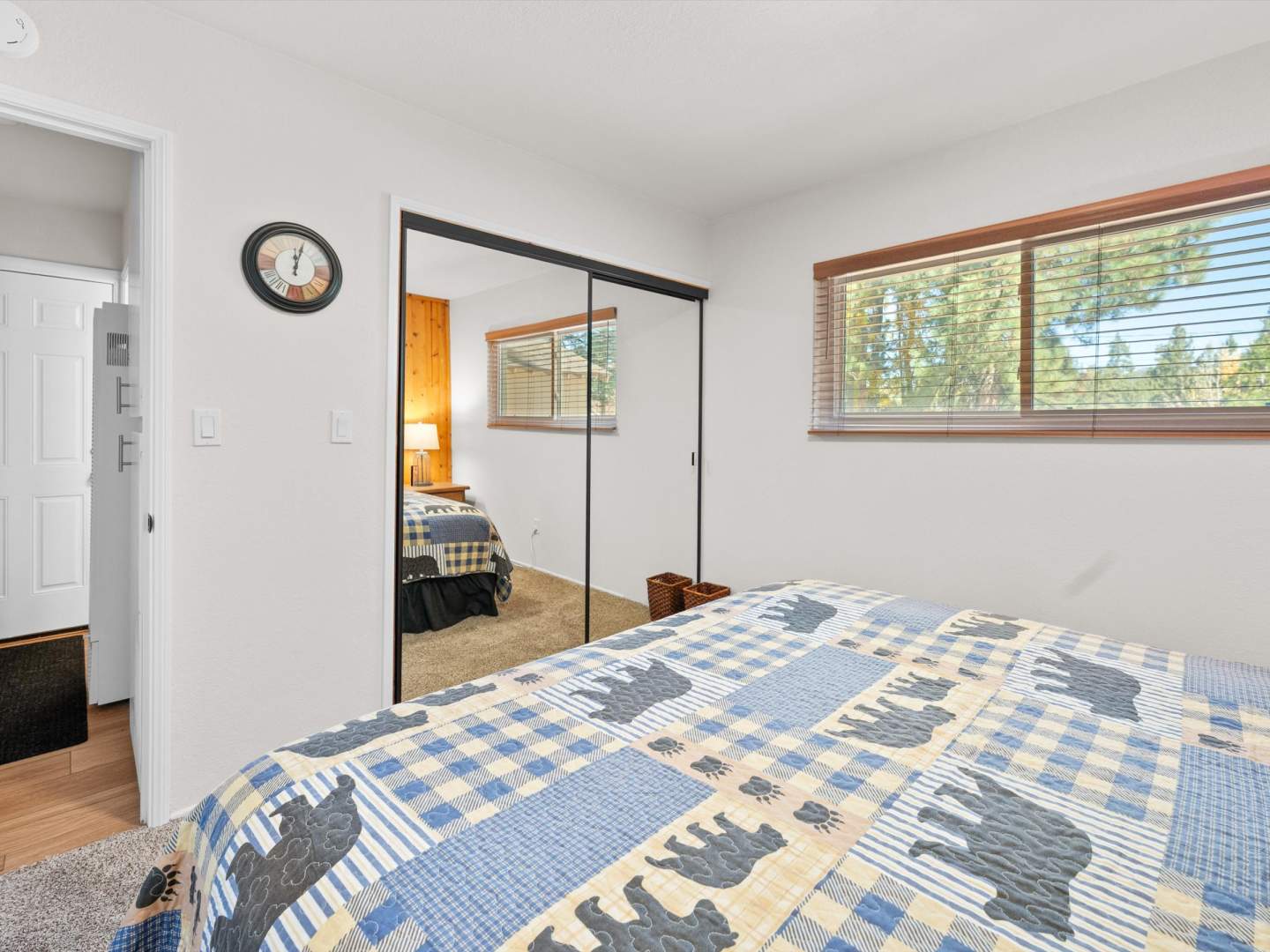 This lovely cottage is centrally located in Big Bear Lake, and is only one block to the lake! Just minutes from the Village, ski resorts, dining, and year-round recreation—yet tucked away enough to feel like your own private mountain retreat. Inside, the open floor plan with vaulted, T&G ceilings and the classic brick wood-burning fireplace, help create a cozy cabin atmosphere. Thoughtfully updated throughout, this home features new flooring (a mix of upgraded wood vinyl plank and plush carpet), a beautifully remodeled bathroom, newer appliances, fresh interior paint, and all new interior and exterior doors—with a stunning custom-carved wood front door that adds a touch of artistry and mountain flair. Comfort is enhanced with a new split A/C and heating system, ensuring year-round enjoyment. Step outside to the newly built deck, ideal for outdoor dining or soaking up the alpine sunshine. The freshly fenced yard adds privacy and convenience if you have pets, and the street-to-street lot with rear parking makes for easy access. Whether searching for a peaceful personal getaway or a popular “tiny cabin” style vacation rental with excellent income potential, this sweet retreat checks every box!