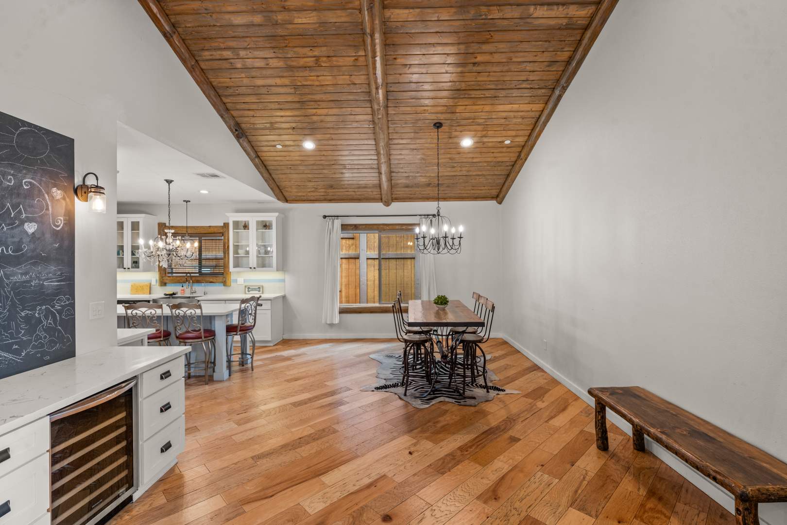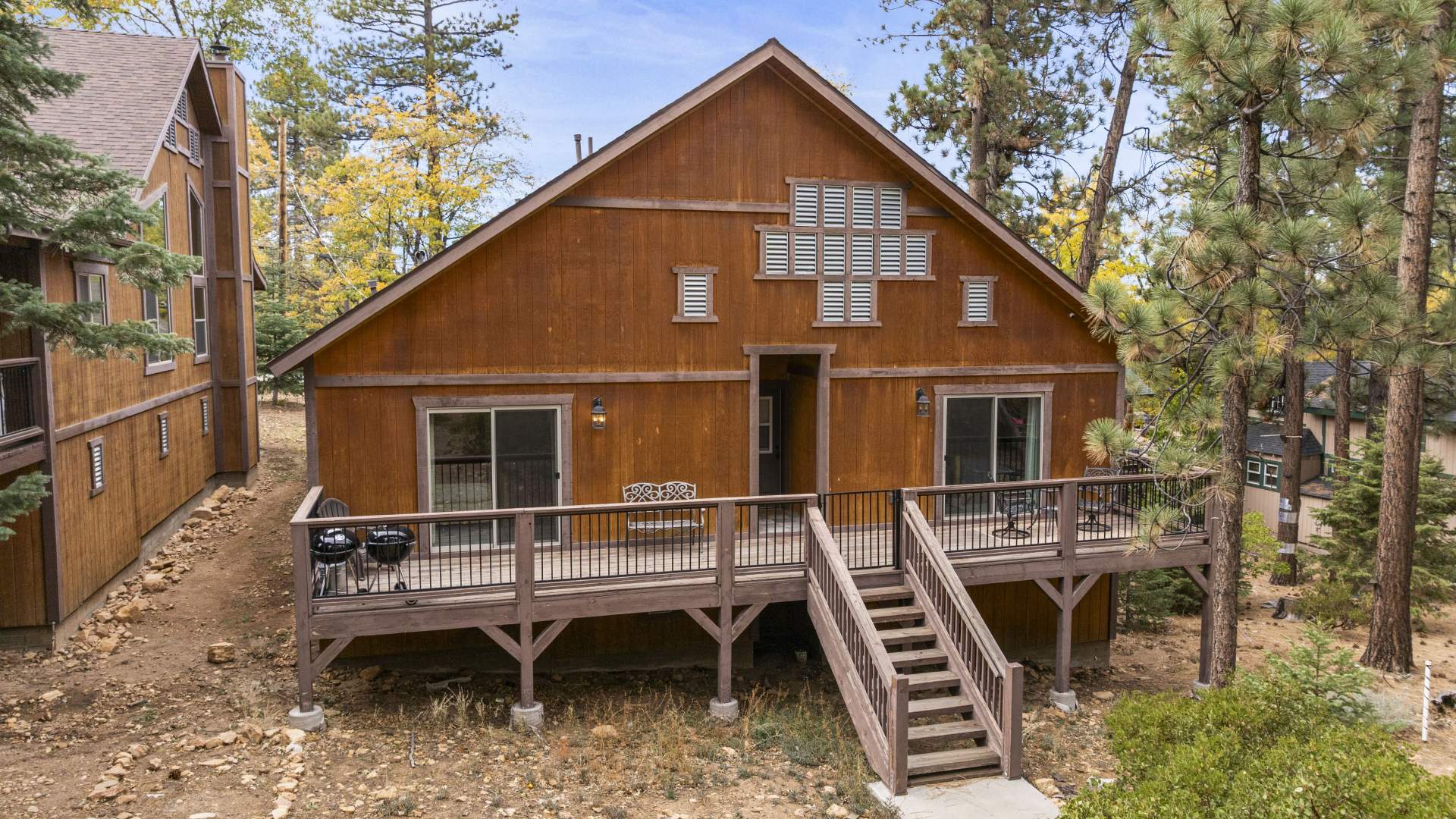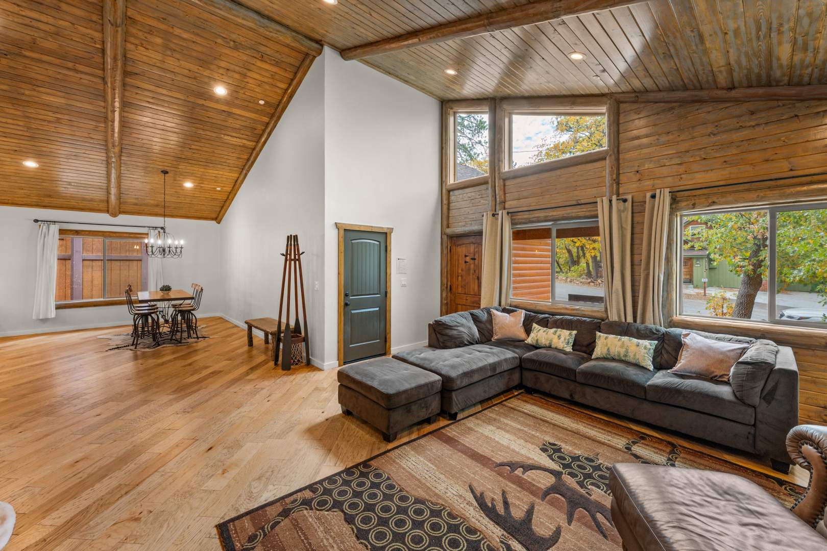 Welcome to your mountain retreat in the heart of Big Bear Lake! This newer (built in 2016) log-style chalet blends mountain rustic charm with modern comfort in an unbeatable central location—just minutes from forest trails, ski slopes, the lake, shopping, and dining, yet tucked away on a quiet dead-end street with no through traffic. The convenient single-level open floor plan features soaring vaulted ceilings and a spacious great room with a wood-burning stone fireplace—perfect for cozy winter evenings or gathering with friends after a day on the slopes. The beautifully appointed kitchen showcases marble countertops, subway tile backsplash, a large center island, and stainless appliances. High-end finishes and warm wood tones create an inviting mountain-modern atmosphere throughout. With 4 bedrooms and 3 full baths, this home offers ample space for family and guests. Two of the bedrooms open directly onto the expansive back deck, ideal for enjoying the serene forested surroundings and fresh mountain air. Additional highlights include an attached two-car garage, laundry, and easy all-season access with level entry. Whether you’re searching for a full-time residence, vacation getaway, or investment property with strong rental potential, this immaculate Big Bear chalet delivers comfort, convenience, and timeless mountain style in one exceptional package.