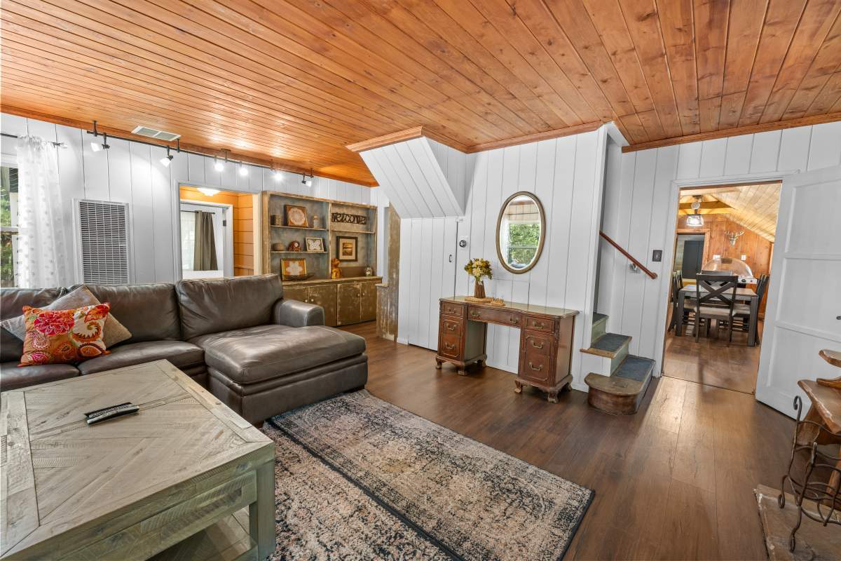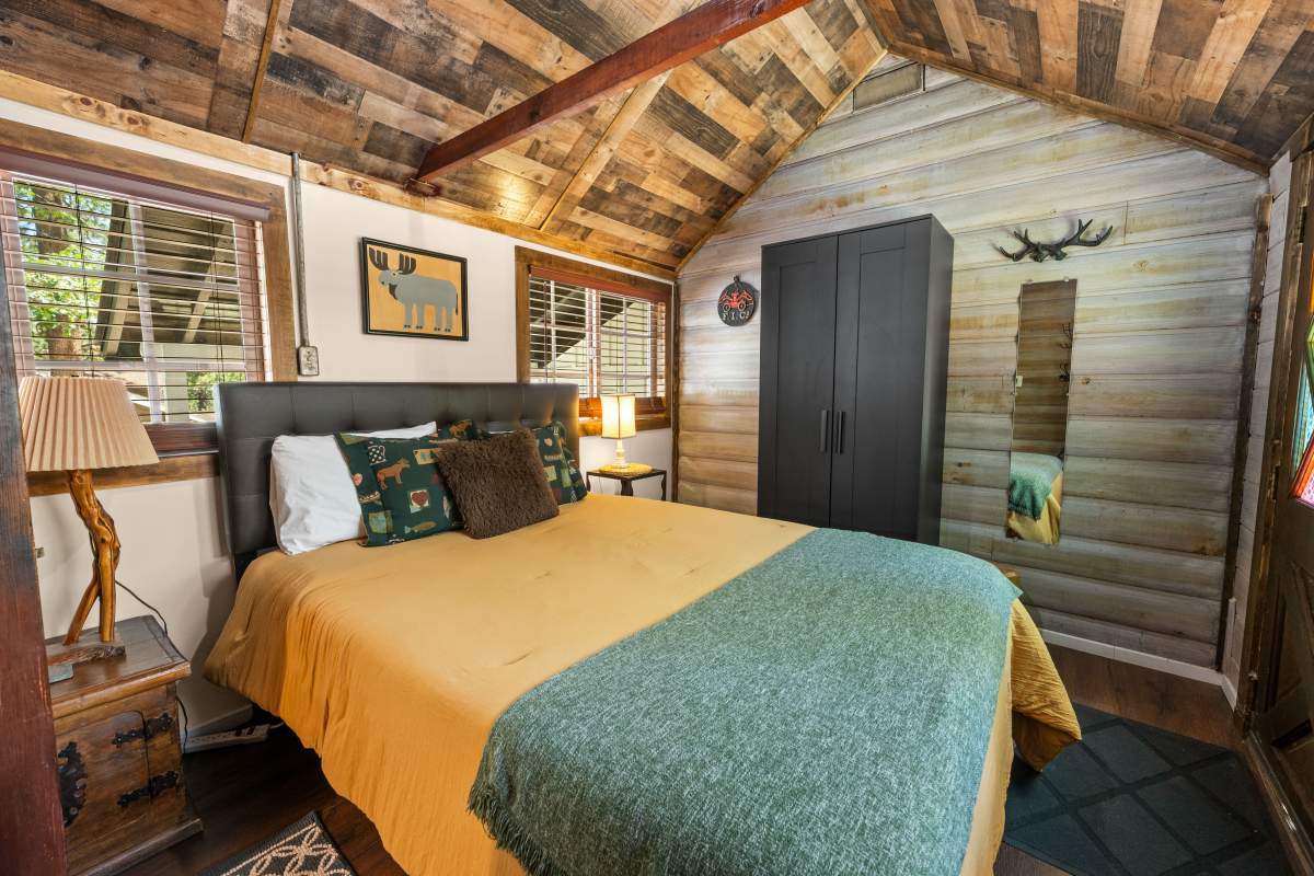 Step into a home that tells a story stretching back nearly a century—an enchanting and authentic Big Bear cabin that blends vintage charm with thoughtful updates. Tucked away on a huge, well-treed lot, this magical retreat offers a quiet, private setting just moments from the best of Big Bear: only 4 blocks to the lake, 5 blocks to the Village, and a mere 2 minutes to the ski slopes. National Forest access and the popular Town Trail are right around the corner. Inside, you’ll find real wood floors, vaulted ceilings, and the warm glow of knotty pine T&G throughout. A beautiful rock fireplace anchors the living space, perfect for cozy winter evenings. The updated kitchen features new cabinets and stylish finishes, while the bathroom has been refreshed with a new sink and copper piping. A tankless water heater adds modern convenience, and a newer concrete patio off the back invites you to relax under the pines in your secluded backyard. With a bedroom and full bath on the main level plus a spacious loft-style suite upstairs, this cabin is ideal as a full-time home, weekend getaway, or vacation rental with excellent income potential. Fresh brand-new siding gives the home a crisp look while preserving its original spirit. This is more than a cabin—it’s a piece of Big Bear history, lovingly refreshed for the next chapter. Whether you’re hitting the slopes, hiking out your front door, or strolling to dinner in the Village, the location couldn’t be more perfect. Don’t miss this rare opportunity to own a true mountain gem.