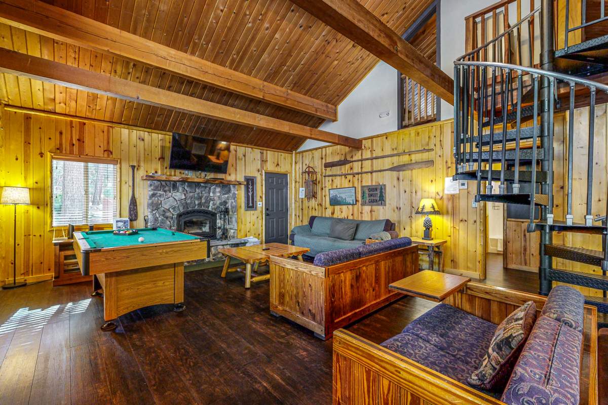 Nestled in one of Big Bear Lake’s most sought-after locations, this inviting 2-bedroom, 2-bath cabin is the perfect mountain retreat. Set just steps from the National Forest, you’re within easy walking distance to the Pine Knot Trailhead and Aspen Glen Picnic Area—offering immediate access to scenic trails through flower-filled meadows. The lake, Village, and Snow Summit Ski Resort are all just minutes away, making this an ideal home base for outdoor enthusiasts. The open-concept great room welcomes you with vaulted ceilings, a wood-burning fireplace, and warm, rustic accents. A spiral staircase leads to a spacious loft area with a 3/4 bath—perfect for a bonus sleeping area, office, or cozy reading nook. On the main level, you’ll find two comfortable bedrooms, a full bathroom, and a spacious kitchen with plenty of room to cook and gather. It’s a practical layout that maximizes space while keeping everything connected and cozy. Outdoors, the fully fenced backyard offers privacy and relaxation, complete with a hot tub for soaking under the stars. This peaceful mountain retreat feels tucked away, yet is conveniently close to all that Big Bear has to offer. Whether you’re looking for a full-time home, a vacation getaway, or a short-term rental investment, this cabin delivers on location, charm, and fun for all seasons.