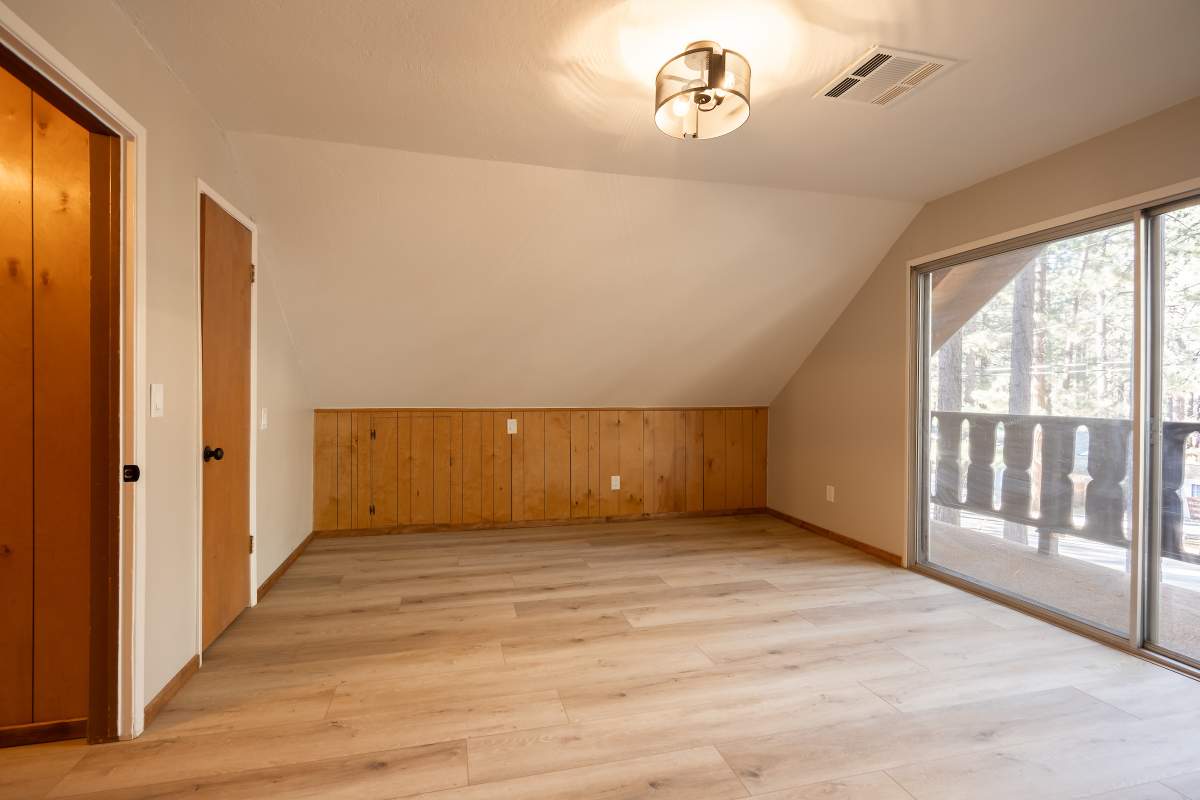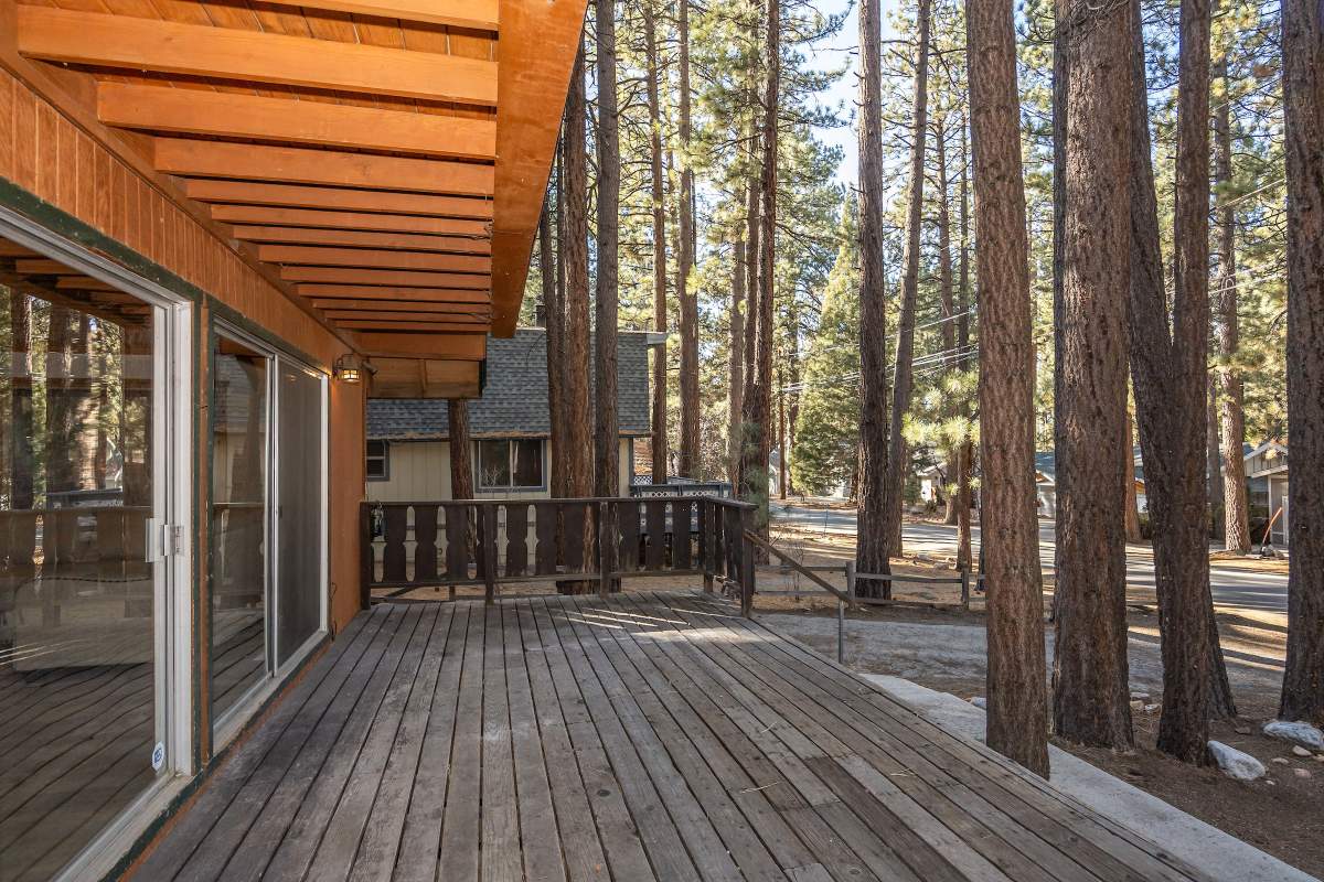 This spacious 4-bedroom chalet in the heart of Big Bear Lake offers the perfect balance of comfort and convenience. Situated on a level lot with easy year-round access, this home is just minutes from the lake, ski slopes, shopping, and dining. The remodeled kitchen and bathrooms provide modern updates, while new laminate flooring adds durability and style. The layout includes a bedroom and bath on the main level. Upstairs, one of the bedrooms features a private balcony. The large front deck, additional side deck, and fenced yard offer plenty of outdoor space for relaxing or entertaining. A detached garage and additional parking accommodate multiple vehicles with ease. With central forced air heating and laundry, this home is well-equipped for both full-time living and weekend getaways. Its prime location and thoughtful features also make it a strong vacation rental candidate. Don’t miss this opportunity to own a versatile property in beautiful Big Bear.