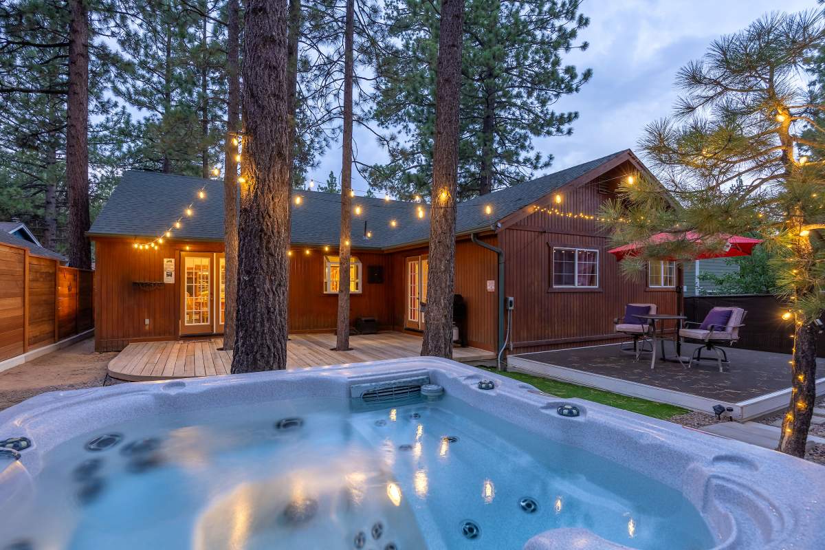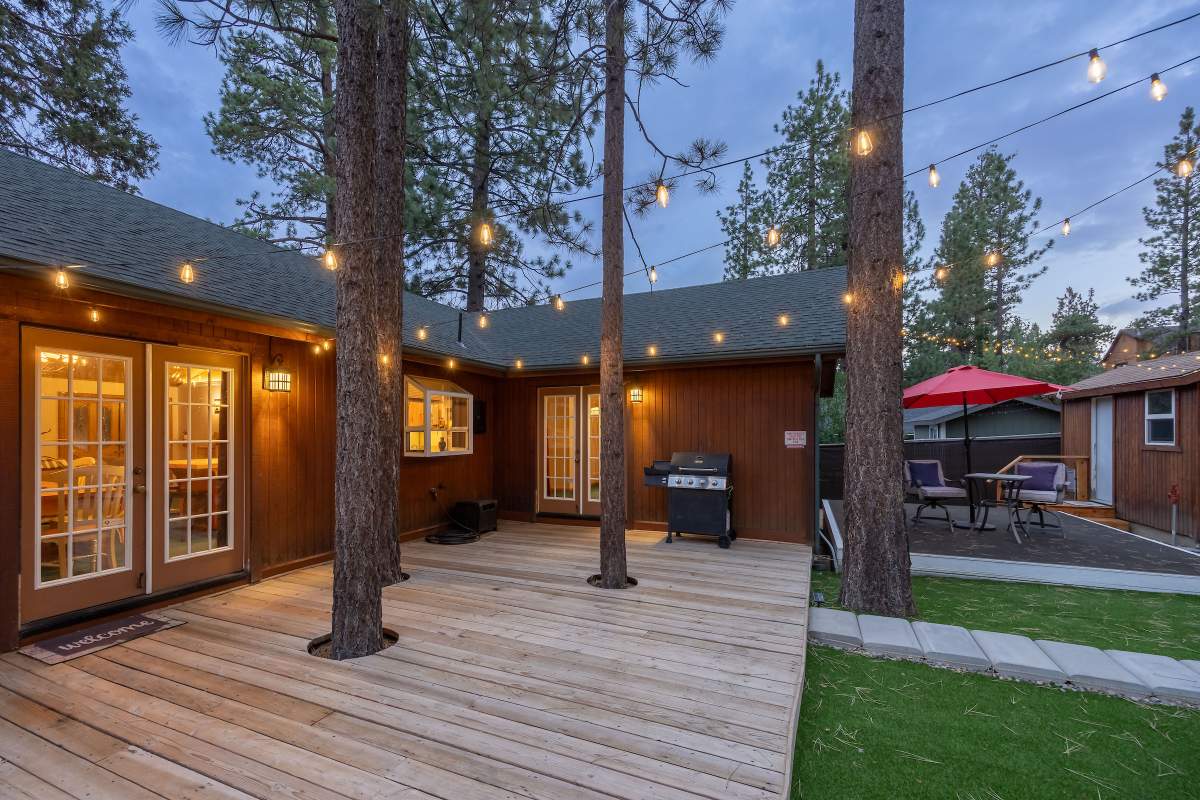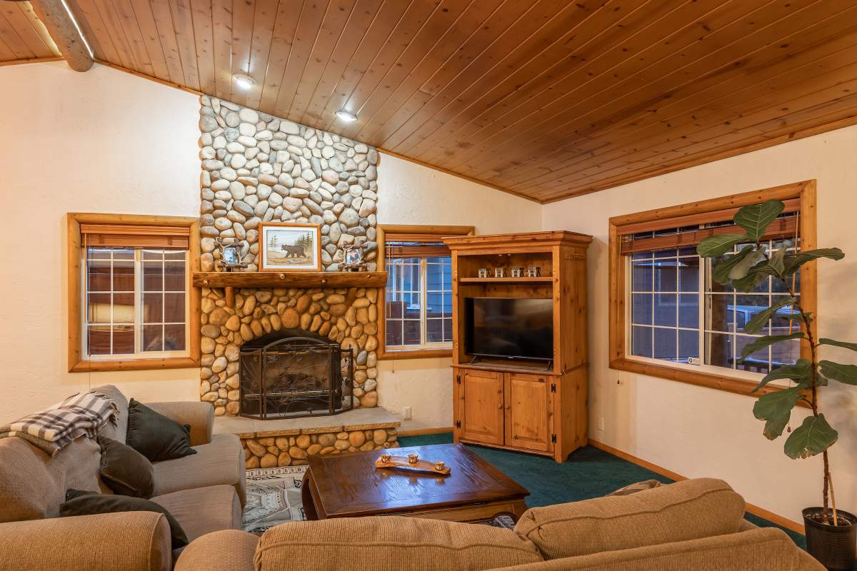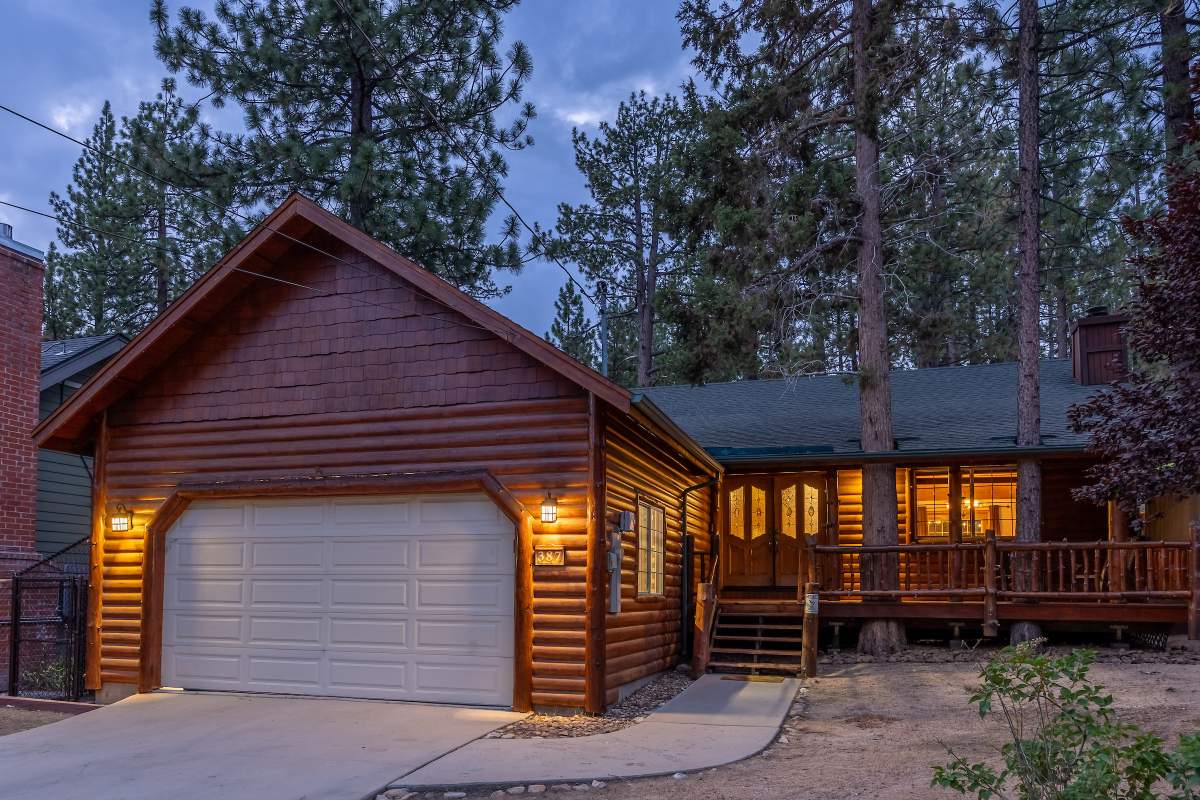 Beautifully maintained and thoughtfully upgraded log-style home ideally located near the lake, Meadow Park, and Snow Summit. This home has so many special attributes and value-added comforts that you just won’t find elsewhere. Comfortable single-level great room style floor plan with rock fireplace, T&G ceilings with custom designed lighting. Entertainer’s kitchen features an island w/gas range, custom cabinetry, garden window over the sink, walk-in pantry, and adjacent dining area. Main bedroom suite has vaulted ceiling, french doors that access the back deck; bath w/dual vanities, separate shower and jetted tub. Enjoy the exquisitely designed outdoor living space including low-maintenance landscaping, two rear decks, spa, concrete sitting areas, surrounded by full superior privacy fencing and mature pines around the property. Newly built shed is ready to install electric and water, suitable for workshop, storage, or kids’ play area. Concrete pad for sauna adjacent to shed and additional concrete pad next to garage for a generator. Securely designed dog run with access from garage and two separate gated areas. Freshly stained covered front porch. Exterior front and back lighting on automatic timers, plus separate circuits for holiday lights. The list goes on…go take a look at this exceptional home before it’s gone.
